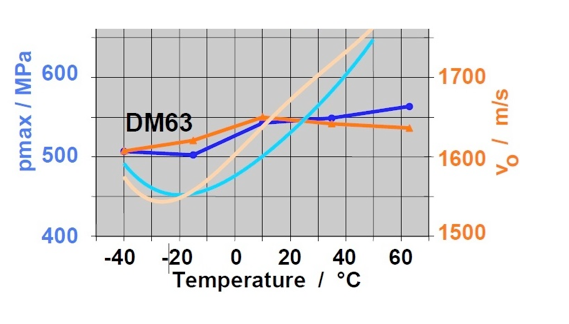 Το μεν βλήμα DM63 βαλλόμενο είτε από άρμα LEO2A4 (με σωλήνα L44) είτε από άρμα LEO2HEL (με σωλήνα L55), σε όλο το εύρος θερμοκρασιών, δηλαδή από -46 oC έως +63 oC, λόγω σταθερότητας της πυρίτιδος, (άρα και περισσότερη προστασία του σωλήνα) έχει τις ίδιες επιδόσεις διάτρησης. Κατά το κοινώς λεγόμενο, τόσο το LEO2A4 όσο και το SABRA το κάνει «σουβλάκι». Τα στοιχεία έχουν συναχθεί σε πραγματικές βολές με πραγματικές συνθήκες και σε αποστάσεις 2.000 μέτρων και 500 μέτρων.