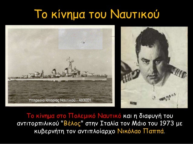 Η ΄΄ανταρσία΄΄ του Α/Τ ΒΕΛΟΣ αποτελεί τμήμα και μάλιστα το δυναμικό μέρος του αποκαλούμενου ΄΄ΚΙΝΗΜΑ ΤΟΥ ΝΑΥΤΙΚΟΥ ΜΑΗΣ 1973΄΄. Αυτή η ΄΄ανταρσία΄΄ του πληρώματος υπό τον Κυβερνήτη αντιπλοίαρχο Ν.Παππά, κατέρριψε από τις ανακοινώσεις του Απριλιανού καθεστώτος την έκφραση ΄΄οπερετικό΄΄. Έτσι είχαν αποκαλέσει το σχεδιαζόμενο κίνημα τις πρώτες ώρες των συλλήψεων των στελεχών, που θα απέπλεαν στις 23 Μαίου με το μεγαλύτερο μέρος του στόλου ενάντια της δικτατορίας. Το εγχείρημα του Παππά και όσοι τον ακολούθησαν (όλοι άγαμοι, χωρίς οικογενειακές υποχρεώσεις, νεαρής ηλικίας και μόνιμοι αξιωματικοί και υπαξιωματικοί) είχε τα εξής αποτελέσματα: