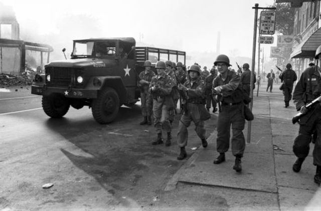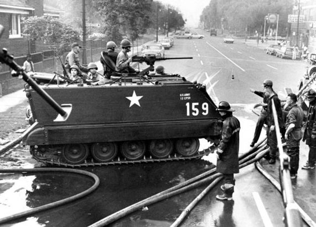 Stin períptosi tou Ntitróit, tóte tou kéntrou tis aftokinitoviomichanías stis Inoménes Politeíes kai ston kósmo, i dioíkisi tou Línton Tzónson kálese to strató-4.700 stratiótes apó to 82o kai 101o aerometaferómeno tmíma - gia na enischýsei ti mazikí katastolí pou metriástike se diástima pénte imerón Apó tin Frourá kai tin politeía kai tin topikí astynomía.