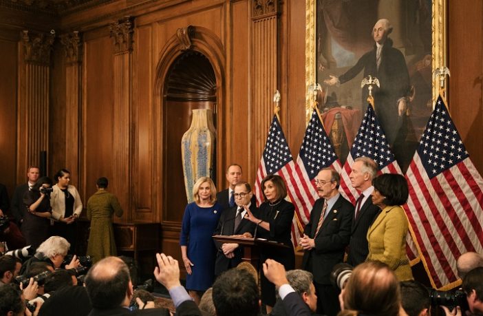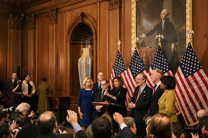 Ο πρόεδρος «αυτή τη στιγμή παραπέμφθηκε στη δικαιοσύνη», δήλωσε η Δημοκρατική Πελόσι.