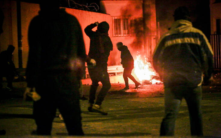 Συγκρούσεις σημειώθηκαν έξω από το στρατόπεδο Κυριαζή στην περιοχή Παγανής, στην έξοδο της Μυτιλήνης προς το κεντρικό νησί.