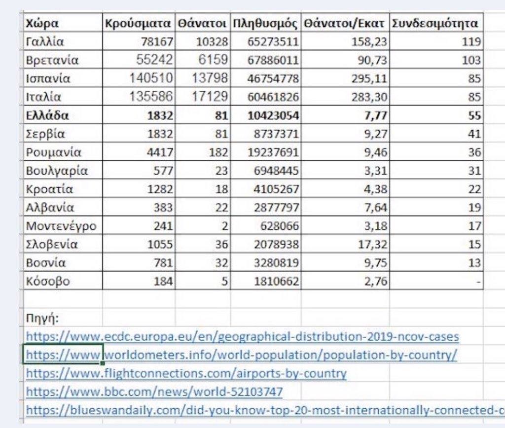 Στον σχετικό πίνακα που παρατίθεται στο: https://www.worldometers.info/coronavirus/#countries