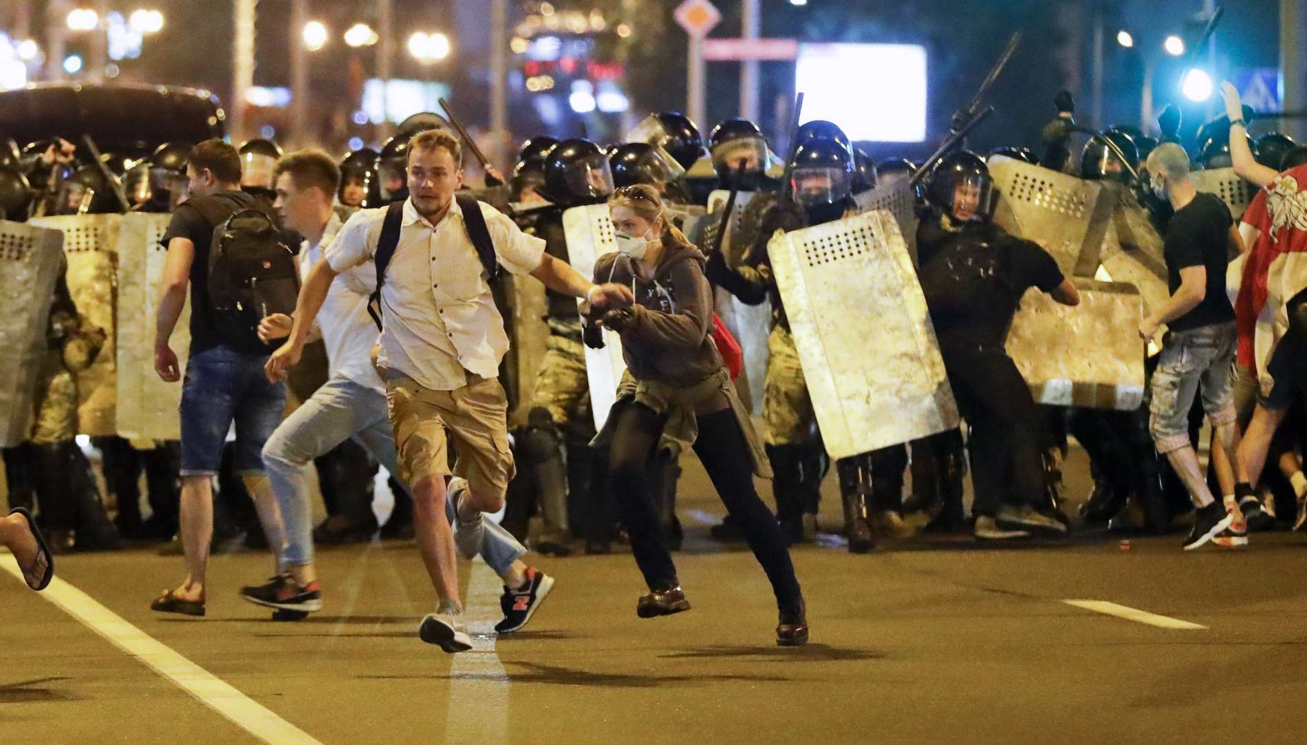 Δυνάμεις επιβολής της τάξης με ασπίδες, ρόπαλα και χειροβομβίδες κρότου-λάμψης, ενισχυμένες από ειδικές δυνάμεις της αστυνομίας, επενέβησαν και «ανέκτησαν τον έλεγχο» του κέντρου του Μινσκ, σύμφωνα με δημοσιογράφους του ρωσικού πρακτορείου ειδήσεων TASS. Ασθενοφόρα με τραυματίες και λεωφορεία με πολλούς συλληφθέντες θεάθηκαν να αποχωρούν από το κέντρο, όπως αναμεταδίδει το Αθηναϊκό Πρακτορείο Ειδήσεων.