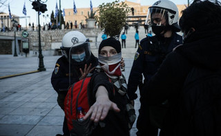 Μάλιστα όπως καταγράφεται σε βίντεο που δημοσιεύθηκε στο Twitter, αστυνομικός επιτέθηκε και απώθησε με την ασπίδα του κοπέλα η οποία στεκόταν ακούνητη μπροστά του σε μία στάση που θύμιζε το γνωστό έργο του Banksy με το μπουκέτο λουλουδιών και τον διαδηλωτή.