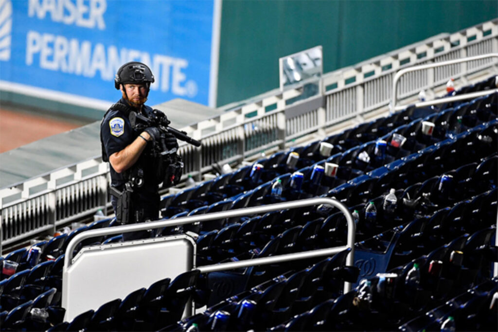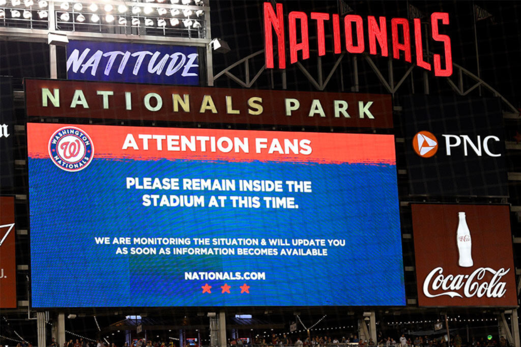 Ανταλλαγή πυροβολισμών από δύο οχήματα στις 9:30 μ.μ. έξω από το Εθνικό Στάδιο κατά τη διάρκεια του αγώνα μπέιζμπολ του Σαββάτου μεταξύτων Washington Nationals και των San Diego Padres, προκάλεσε χάος, με τους οπαδούς να τρέχουν πανικόβλητοι να εγκαταλείψουν το γήπεδο ή να καλύπτονται κάτω από τα καθίσματα. Η αστυνομία δήλωσε ότι ερευνά το περιστατικό και ότι δεν υπήρξε απειλή για κανέναν μέσα στο γήπεδο, ενώ τρεις άνθρωποι τραυματίστηκαν, συμπεριλαμβανομένης μιας γυναίκας που παρακολουθούσε το παιχνίδι και χτυπήθηκε ενώ στεκόταν έξω από το γήπεδο. Τα άλλα δύο θύματα που ήταν σε ένα από τα αυτοκίνητα αργότερα μεταφέρθηκαν σε τοπικό νοσοκομείο με τραύματα από πυροβολισμούς, όπως ανέφεραν οι αστυνομικοί. Το παιχνίδι διακόπηκε στα μέσα της έκτης περιόδου, με τους Padres να προηγούνται 8-4. Οι υπεύθυνοι του σταδίου αρχικά ανακοίνωσαν στον πίνακα αποτελεσμάτων ότι υπήρξε ένα περιστατικό έξω από το γήπεδο, ζητώντας από τους φιλάθλους να παραμείνουν μέσα. Περίπου 10 λεπτά αργότερα, η γηπεδούχος ομάδα έγραψε στο Twitter ότι οι φίλαθλοι θα ήταν καλό να εγκαταλείψουν το στάδιο αυτή τη στιγμή μέσω του κεντρικού γηπέδου και των δεξιών πυλών. Οι υπεύθυνοι των Nationals δήλωσαν ότι το παιχνίδι θα συνεχιστεί το απόγευμα της Κυριακής και ότι οι ομάδες θα παίξουν το προγραμματισμένο παιχνίδι τους μετά την Κυριακή, ενώ ακύρωσαν τη συνέντευξη τύπου μετά το παιχνίδι με τους παίκτες και τον προπονητή της ομάδας.