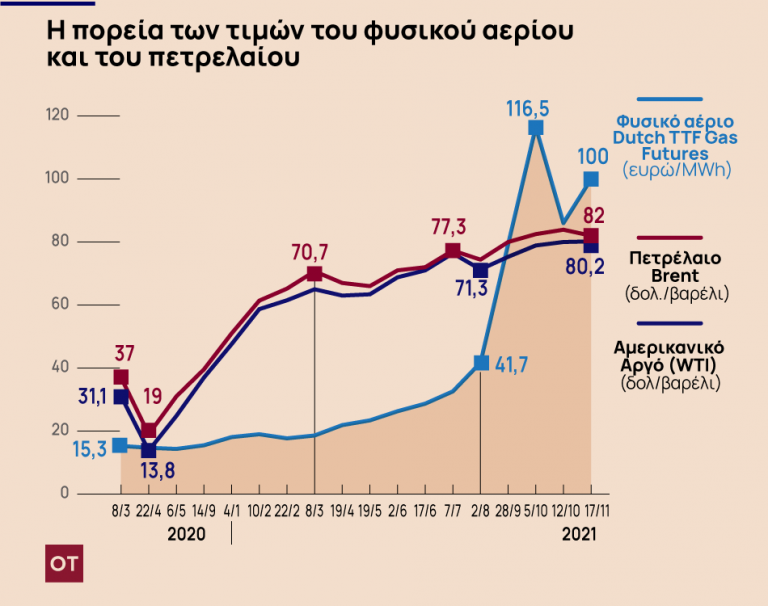 Την ίδια στιγμή οι αυξήσεις στις τιμές του αργού πετρελαίου στην Ευρώπη έχουν ξεπεράσει από τις αρχές του έτους το 60%, βάζοντας φωτιά στις τιμές των υγρών καυσίμων, με τον ΟΠΕΚ να παίζει σκληρό πόκερ για να γεμίσει τα ταμεία του, καθώς δεν προχωρά σε μεγάλες αυξήσεις της παραγωγής.
