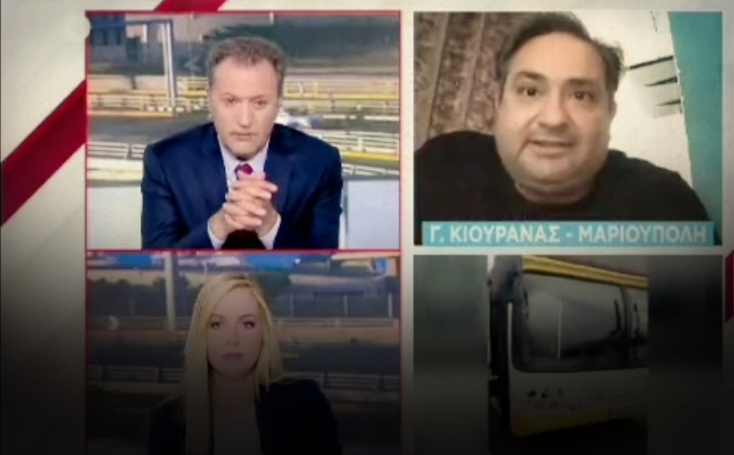 «Άρα θα μείνεις στη Μαριούπολη, δεν σκέφτεσαι να φύγεις από εκεί», ρώτησε ο παρουσιαστής Οικονόμου (του ΣΚΑΪ) τον Γ. Κιουράνα που ζει στη Μαριούπολη της Ουκρανίας.