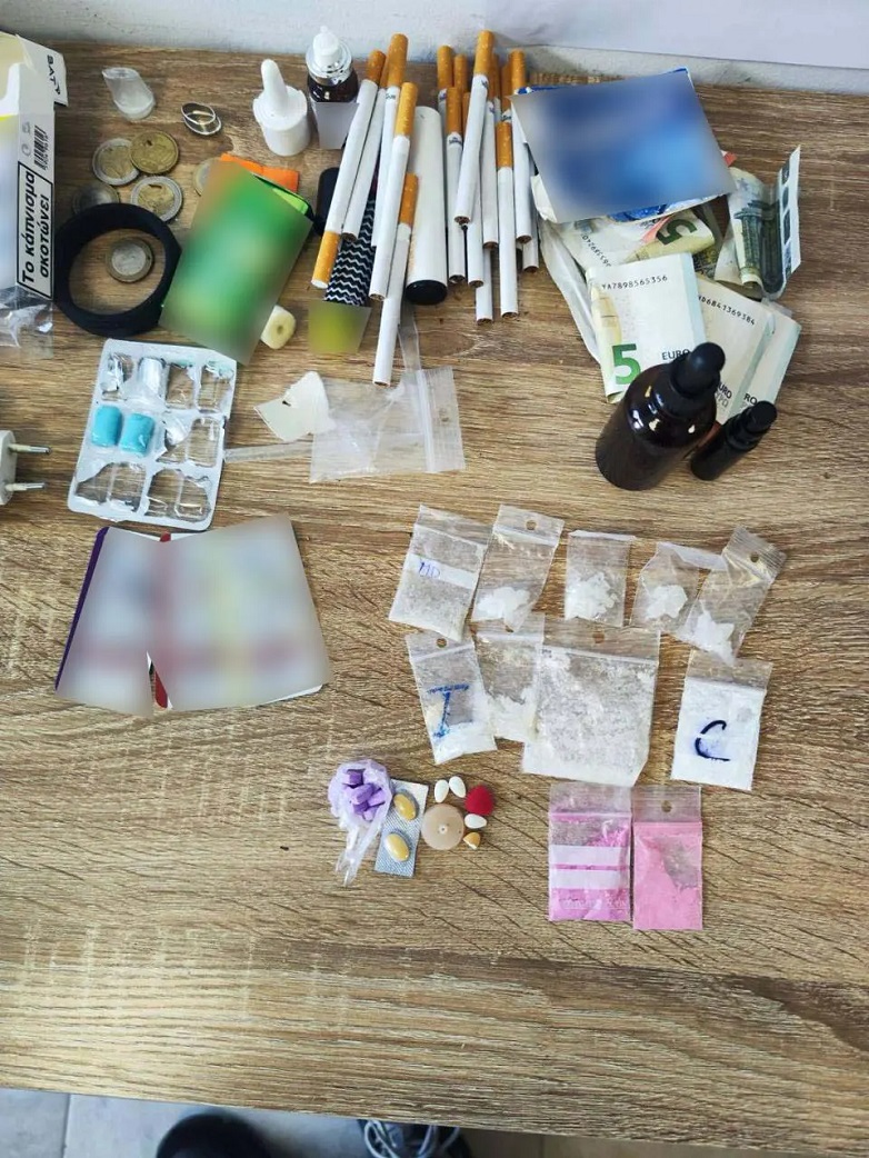 Συγκεκριμένα, βρέθηκαν ποσότητες κρυσταλλικής μεθαμφεταμίνης, κοκαΐνης, ροζ κοκαΐνης, σκόνης MDMA και υδροβουτυρικού οξέως.