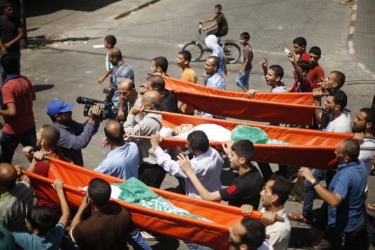 Παλαιστίνιοι αξιωματούχοι ανέφεραν ότι 65 άνθρωποι εκ των οποίων τουλάχιστον 15 ήταν κάτω από την ηλικία των 18 ετών, σκοτώθηκαν από την έναρξη των ισραηλινών χερσαίων επιχειρήσεων στην Λωρίδα της Γάζας τις βραδινές ώρες της Πέμπτης. Σύμφωνα με το Παλαιστινιακό Κέντρο για τα Ανθρώπινα Δικαιώματα, που εδρεύει στη Γάζα, το 80% των θυμάτων είναι άμαχοι και ανάμεσά τους πολλά παιδιά και γυναίκες. Τουλάχιστον 2.200 παλαιστίνιοι έχουν τραυματιστεί από την έναρξη των συγκρούσεων στις 8 Ιουλίου.