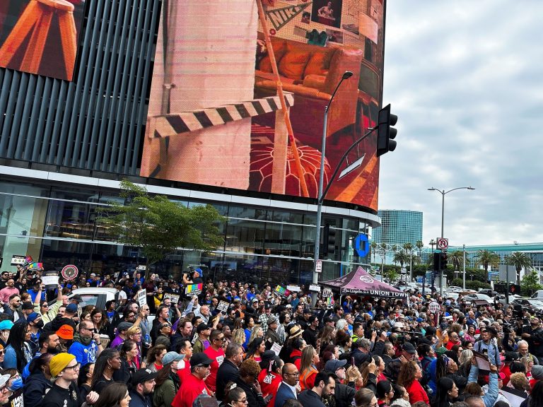 Την Παρασκευή, μερικές εκατοντάδες μέλη συνδικάτων του τουρισμού και της φιλοξενίας, εκπαιδευτικοί, εργαζόμενοι στα logistics και δημόσιοι υπάλληλοι συγκεντρώθηκαν στο κέντρο του Λος Άντζελες στέλνοντας ένα μήνυμα ενότητας και αποφασιστικότητας. Τα συνδικάτα που συμμετείχαν εκπροσωπούν περισσότερους από 200.000 εργαζόμενους με συλλογικές συμβάσεις που λήγουν επίσης το 2023.