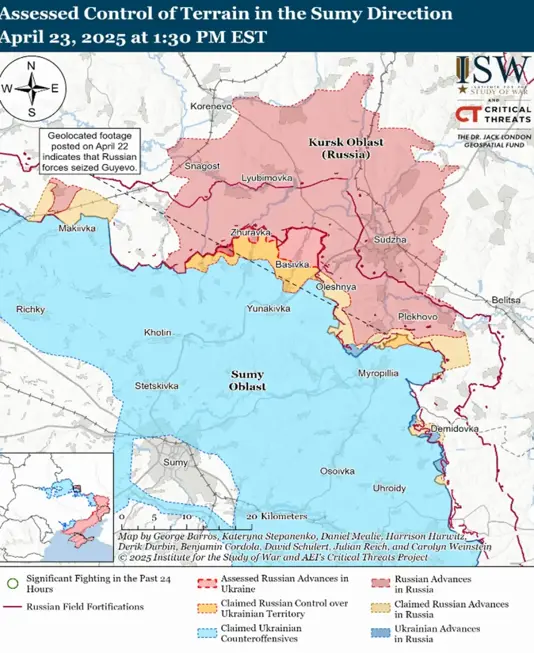 Το σχέδιο του Τραμπ για την Ουκρανία, προκειμένου να σταματήσει η ρωσική εισβολή που είναι σε εξέλιξη από το 2022, αν τελικά γίνει αποδεκτό, περιλαμβάνει αλλαγή συνόρων και το Newsweek αναπαρήγαγε χάρτες που δημοσίευσε η αμερικανική δεξαμενή σκέψης Ινστιτούτο Μελέτης του Πολέμου και δείχνει αλλαγή συνόρων, με τη Ρωσία να κρατάει τα εδάφη που κατέκτησε στον πόλεμο, αλλά και όσα προσάρτησε το 2014.