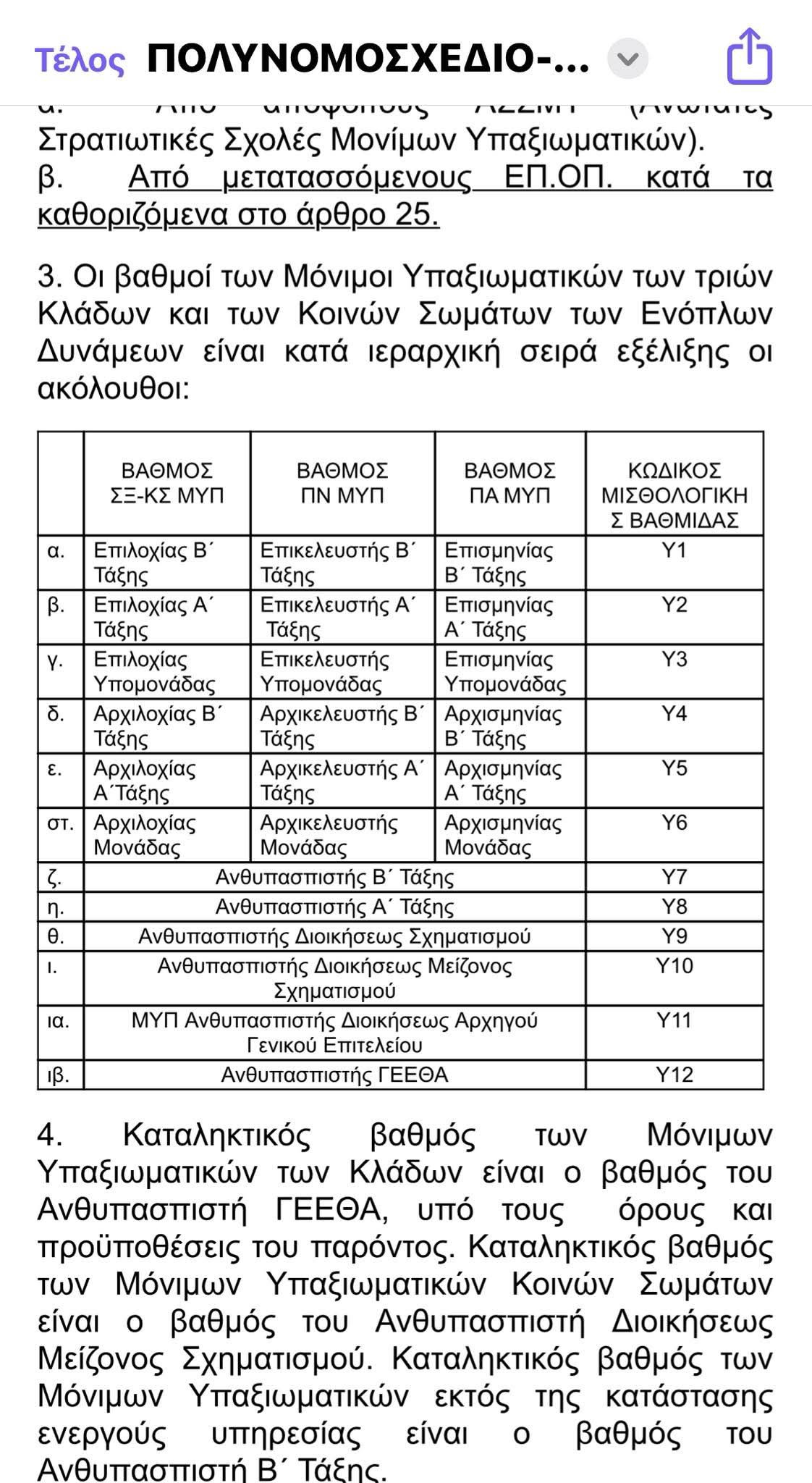Για τους ΜΥΠ εκτός ενεργού υπηρεσίας: Ανθυπασπιστής Β΄ Τάξης (Υ7).