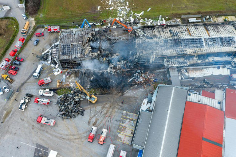 Στο μεταξύ, οι πυροσβέστες επιχειρούν ακόμη στο κομμένο στα δύο εργοστάσιο, με ειδικούς να προσπαθούν να εξηγήσουν τα αίτια της πυρκαγιάς που έφτασε τους 1.000 βαθμούς Κελσίου.